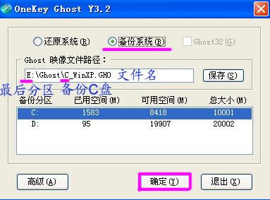 還原系統(tǒng): 1.需要先打開onekey ghost,選擇還原系統(tǒng)c然后確定盤。