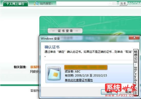 目前在Windows 7用 USBKey 登陸網(wǎng)銀在確認(rèn)證書后