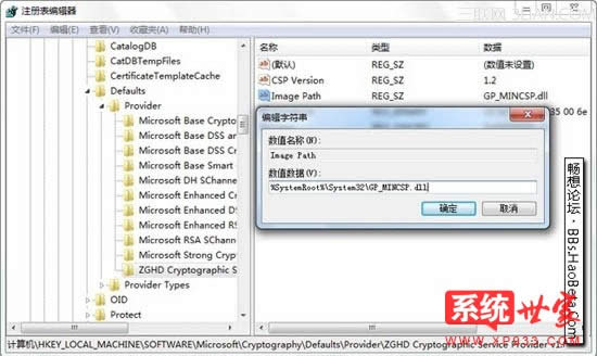 由此可看出,注冊表中少的是 GP_MINCSP.dll 的文件夾位置