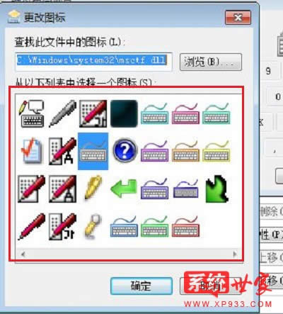 4. 現(xiàn)在可以使用羅列出來(lái)的圖標(biāo)(選中一個(gè)圖標(biāo)一路點(diǎn)擊確定即可),也可以點(diǎn)擊“瀏覽”指定使用外部的圖標(biāo)文件;