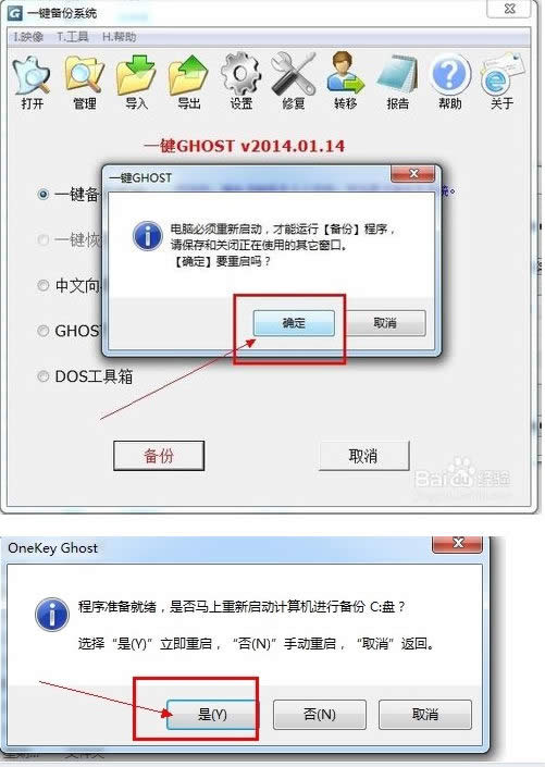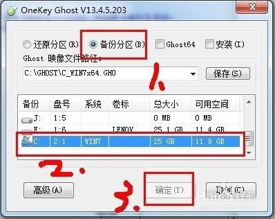 onekey備份系統(tǒng)盤:點擊“備份”----“C盤”----“確定”