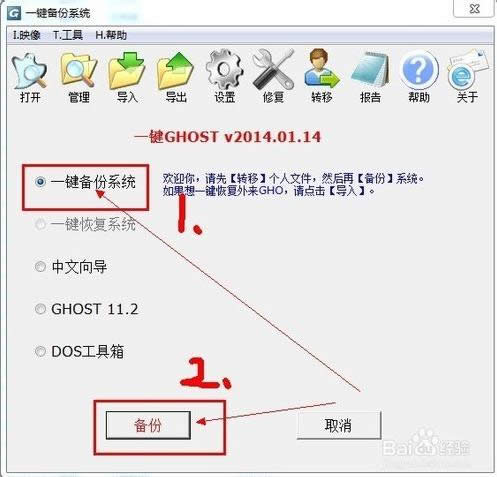 一鍵Ghost備份系統(tǒng)盤:點擊“一鍵備份系統(tǒng)”----“備份”因為onekey不提供開機啟動的還原功能