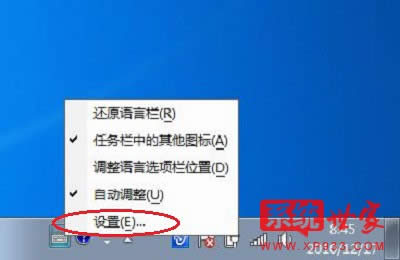 1. 在這個(gè)輸入法圖標(biāo)上面點(diǎn)擊鼠標(biāo)右鍵,彈出菜單中點(diǎn)擊“設(shè)置”;