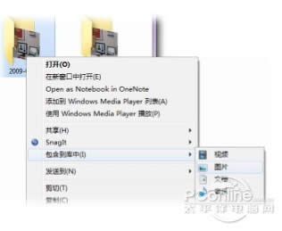 2. 右鍵單擊該文件夾,指向“包含在庫(kù)中”, 然后單擊“圖片”,F(xiàn)在,您的驅(qū)動(dòng)器中 的圖片已經(jīng)位于圖片庫(kù)中。