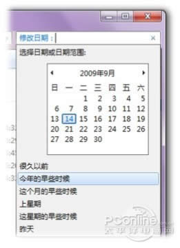 2. 單擊窗口頂部的搜索框,選擇一個(gè)搜索篩選器(例 如:“修改日期”),然后單擊某個(gè)項(xiàng)目(例如, 日期或日期范圍)以縮小搜索范圍。