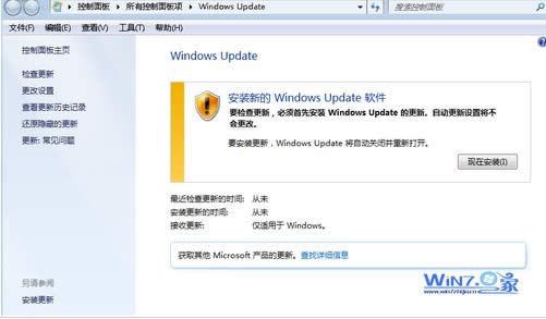 2、在彈出來(lái)的窗口中的自動(dòng)更新窗口的左側(cè)窗中點(diǎn)擊安裝升級(jí)選項(xiàng);