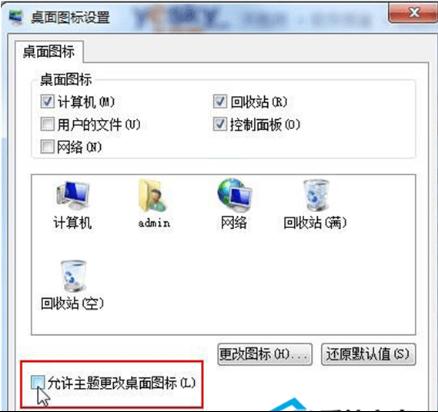 2. 彈出“桌面圖標(biāo)設(shè)置”對(duì)話框,氫“允許主題改變桌面圖標(biāo)”前面的勾去掉,然后單擊“確定”。