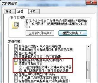 2.在文件夾選項窗口中切換“查看”選項卡,在高級設置一欄將“隱藏受保護的操作系統(tǒng)文件”前面的勾選去掉,然后再選中“顯示隱藏的文件、文件夾和驅動器”復選框,點擊“確定”。