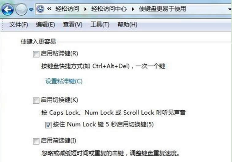 | Windows 7,中文名稱視窗7,是由微軟公司(Microsoft)開發(fā)的操作系統(tǒng),內(nèi)核版本號為Windows NT 6.1。Windows 7可供家庭及商業(yè)工作環(huán)境:筆記本電腦 、平板電腦 、多媒體中心等使用。Windows 7可供選擇的版本有:入門版(Starter)、家庭普通版(Home Basic)、家庭高級版(Home Premium)、專業(yè)版(Professional)、企業(yè)版(Enterprise)(非零售)、旗艦版(Ultimate)。 設置番茄花園Win7系統(tǒng)鍵盤輔助功能的方法分享給大家。鍵盤輔助功能選項,被微軟定義為“為視覺、聽力和行動能力而調(diào)整計算機設置”。對于用戶來說,這幾個功能都相當重要。大家一起來看看鍵盤輔助功能的設置吧。1、點擊“開始——控制面板——輕松訪問——輕松訪問中心——使鍵盤更易于使用”。 2、在打開的使鍵盤更易于使用的窗口中, 使用粘滯鍵可為同時按下兩個或多個快捷鍵比較困難的人來操作。比如說對于常人使用CTRL+C復制鍵很簡單,但是對于部分困難人士可使用粘滯鍵,你可先按一下CTRL,然后再按一下C鍵來實現(xiàn)復制快捷鍵操作。 ![]() 3、使用篩選鍵,可更好地區(qū)分單擊和雙擊鍵,對于一些操作起來比較遲緩的用戶來說,可能會常常在單擊和雙擊間有錯誤的操作,這個篩選鍵功能避免此問題。 windows 7 的設計主要圍繞五個重點——針對筆記本電腦的特有設計;基于應用服務的設計;用戶的個性化;視聽娛樂的優(yōu)化;用戶易用性的新引擎。 跳躍列表,系統(tǒng)故障快速修復等,這些新功能令Windows 7成為最易用的Windows。 |