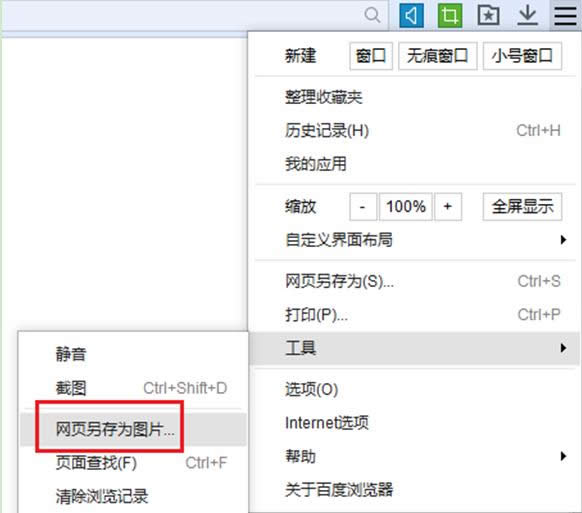 2、點(diǎn)擊菜單,選擇“網(wǎng)頁另存為圖片”。