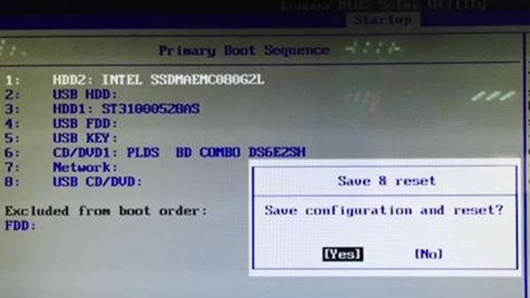 6、調(diào)整到第一位置后,按F10鍵保存設(shè)置后退出,此時(shí)會(huì)彈出一個(gè)窗口,選擇YES。